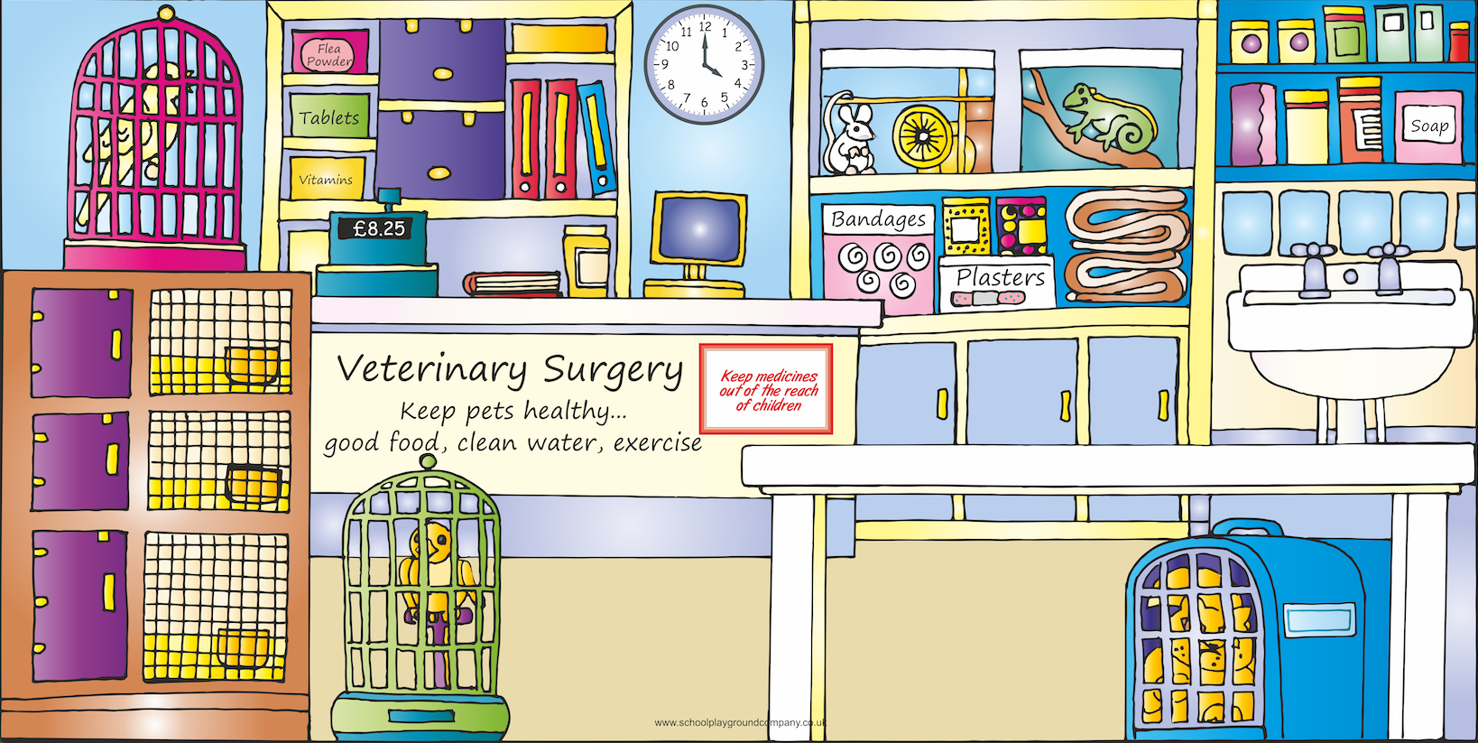 Perfect Size for Large Displays: Measuring 1.2m x 2.4m, this large scene offers a realistic vet clinic backdrop, perfect for creating an engaging and life-like setting in playgrounds, classrooms, or exhibitions.